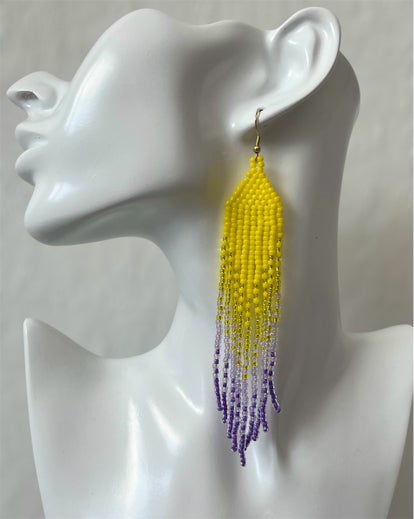 Perleøreringe lavet i små Miyuki perler🤩 Øreringene hedder Aurora.
