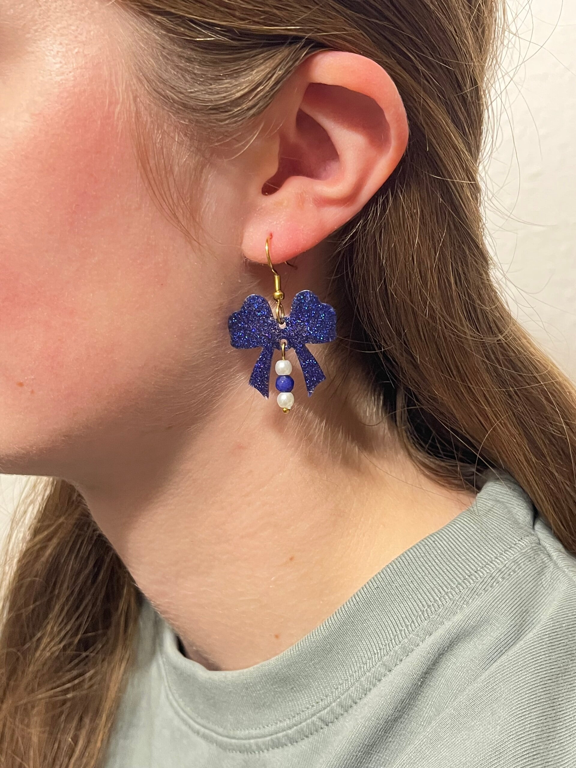 Mega flotte sløjfe øreringe som jeg selv har støbt i noget der hedder Resin, de er både i blå og guld✨